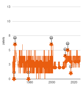 Er wordt een zogenaamde consolidated range van de afgelopen jaren getoond. De consolidated range wordt bepaald door het minimum en maximum van de diverse peilingen te bepalen. Tevens worden de uitslagen van de verkiezing getoond. Deze worden met bullets weergegeven. Met het scroll wheel van de muis kan worden ingezoomd. Met de rechtermuisknop kan worden uitgezoomd.