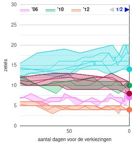 Er wordt een zogenaamde consolidated range getoond. De consolidated range wordt bepaald door het minimum en maximum van de diverse peilingen te bepalen. Tevens worden de uitslagen van de laatste verkiezingen (helemaal rechts) getoond.